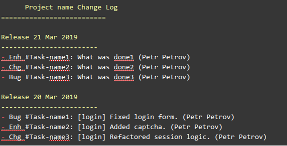 Bug - была исправлена ошибка Enh - было сделано улучшение Chg - было сделано изменение текущего функционала