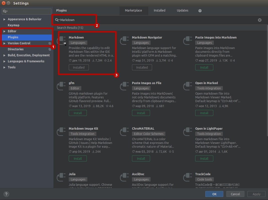Markdown.Находим нужный нам плагин и нажимаем на кнопку