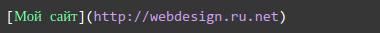 [Название ссылки](http://webdesign.ru.net адрес ссылки)Первая часть (в квадратных скобках) - будет видимой, левая часть (в круглых скобках) - не видимой. :
