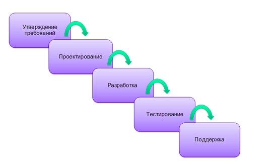 Ранее практически все проекты делались постепенно. То есть, сначала определялись требования к проекту. Только потом рисовался дизайн всего сайта. И так далее. Пока не была окончена полностью одна стадия, не приступалась работа к другой. Такой метод ведения проекта называется Waterfall (водопад).