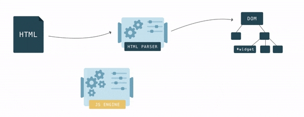Чтобы отобразить HTML-документ, браузер сначала преобразовывает его в формат, который он понимает — DOM. У движка браузера есть специальный фрагмент кода — HTML-парсер, который используется для преобразования HTML в DOM.