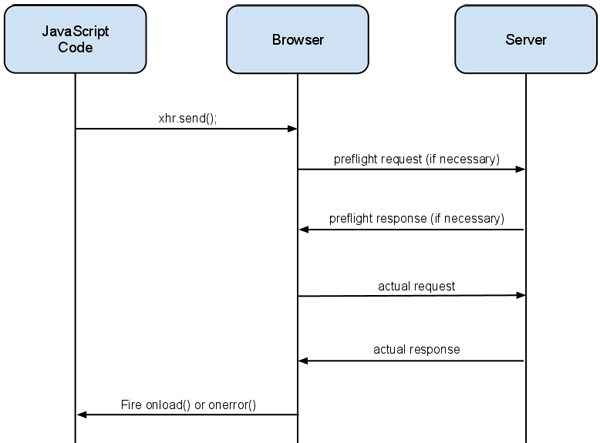 Сервер возвращает preflight-ответ, в котором разрешает или запрещает делать запрос, зависит от настроек сервера.